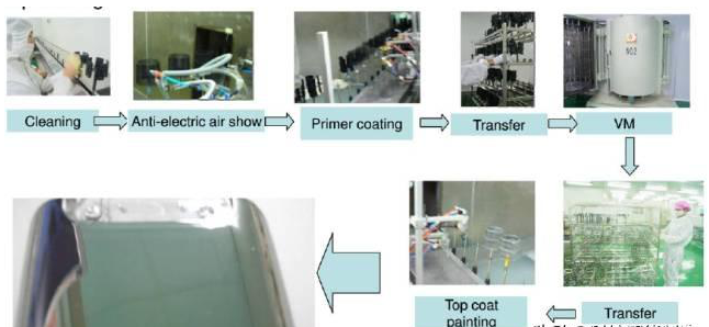 工藝流程:注塑→底漆→烘干→面漆→烘干