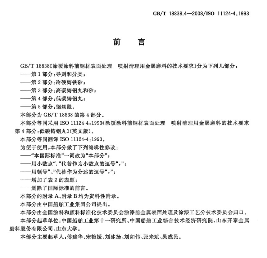 GBT 18838.4-2008 涂覆涂料前鋼材表面處理 噴射清理用金屬磨料的技術要求 低碳鑄鋼丸
